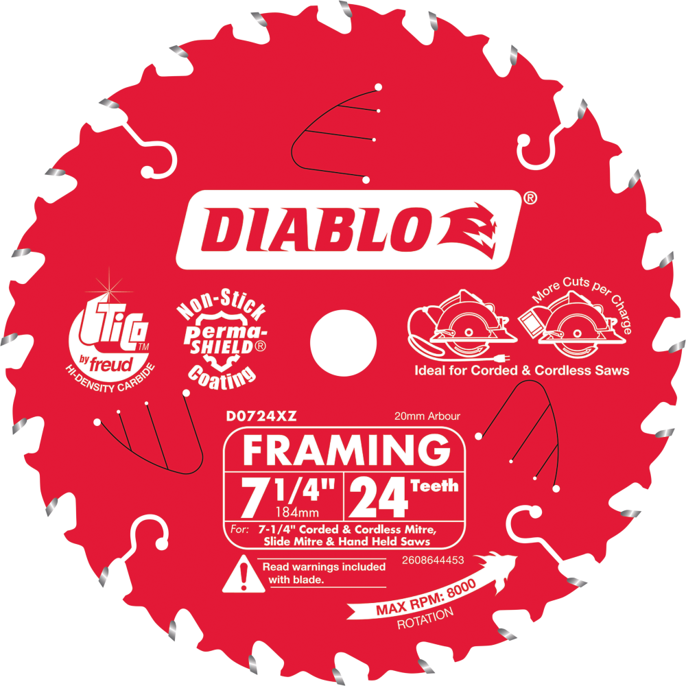 Diablo 7.25" 24T Framing Saw Blade - Superior Durability Meets Effortless Cutting Performance